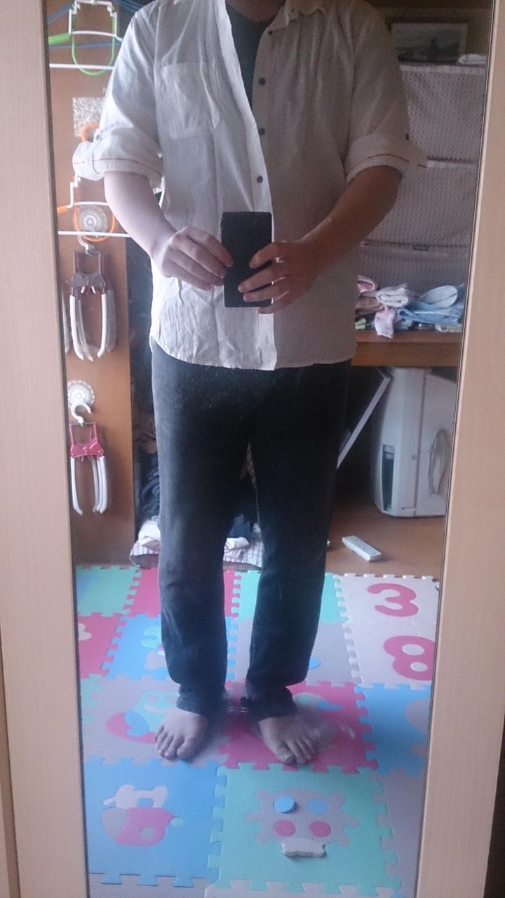 一回ポロシャツだけ脱いで撮ってみて